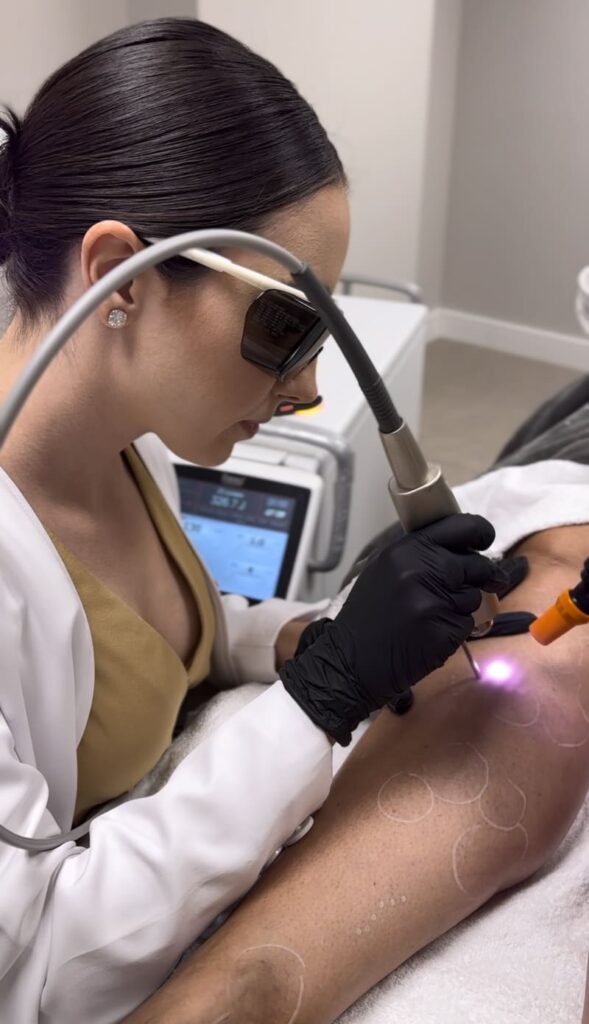 É um dos tratamentos mais modernos que existe hoje para as telangiectasias e pequenas varizes, que antigamente só podiam ser tratadas de forma cirúrgica com microcirurgia.